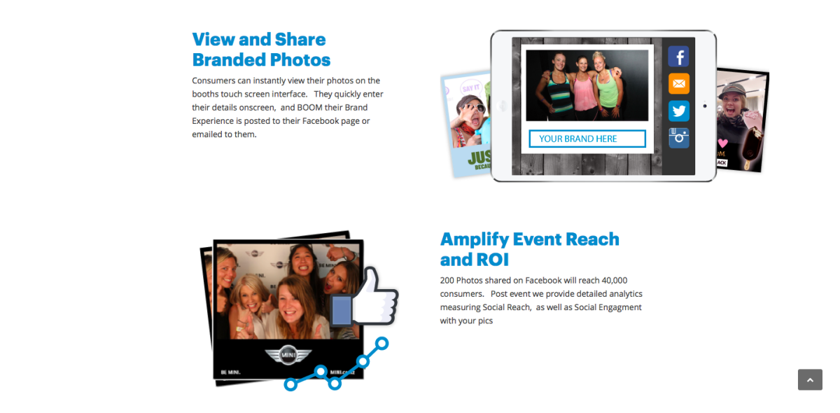 We capture awesome photos or video of consumers at your event. They are sharing your brand with their social networks. Exponentially increase the reach of your event message.